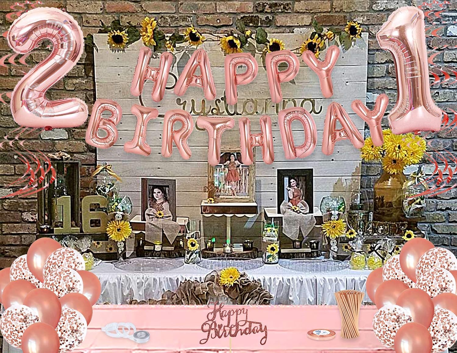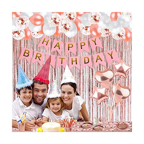 Rose gold birthday party decorations, rose gold party decorations set for girls or women, happy birthday banner, curtains, table runner, balloons, plates, cups, tissue for 24 guest by jsn party 4.8 out of 5 stars 4,077